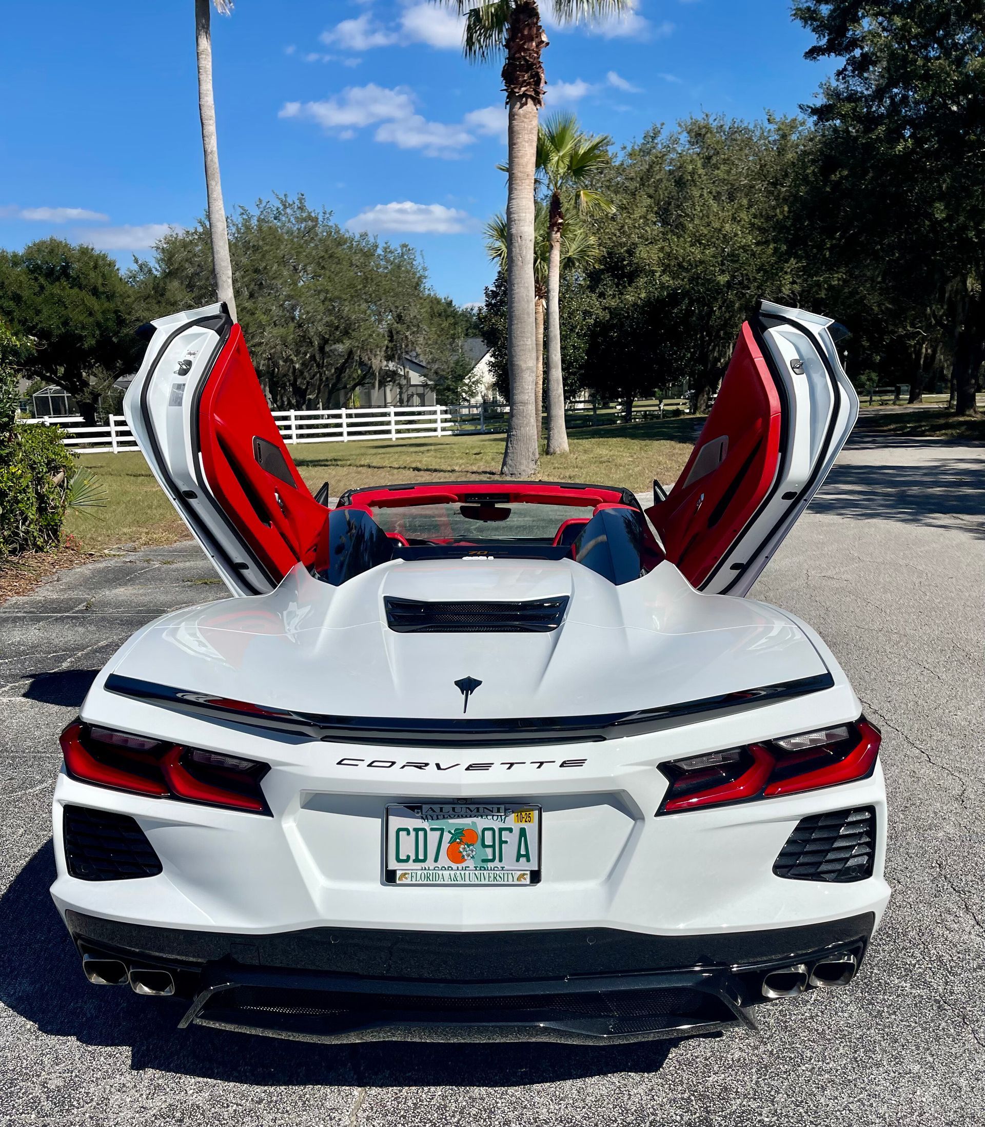 The Corvette Stingray Convertible is not a prom bus or a family car. It is a feature vehicle for one guest who will be arriving, being photographed, and remembered.