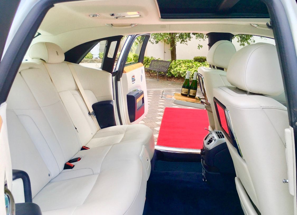 Exotic Limo Orlando is the only provider in Central Florida offering a white Rolls‑Royce Ghost Extended Wheelbase allowing generous room for longer trains and ease of entry and exit. Our chauffeurs are formally dressed, trained in ceremonial etiquette, and provide door-to-door red carpet service. Doors open from the center — a hallmark of the brand - allowing dignified entry and exit for gowns, trains, and grand entrances.